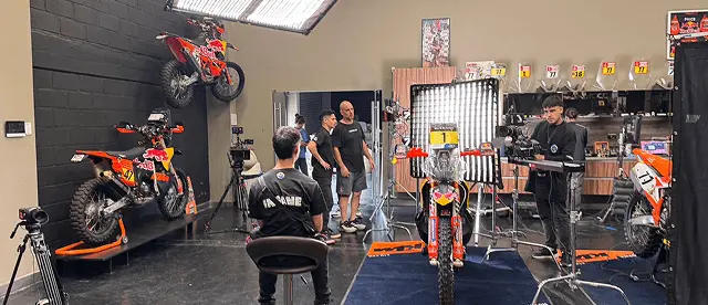 Set de gran escala con cámaras, luz, grip y crew completo.